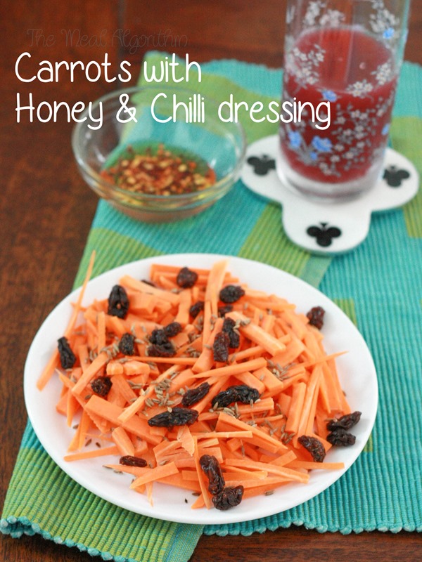 Toss carrots with toasted cumin seeds and raisins and pour the dressing on top.
